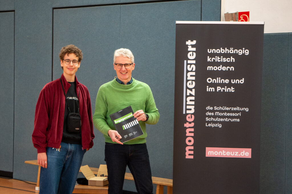 Wir sind monteunzensiert, die Schülerzeitung des Bischöflichen Maria-Montessori Schulzentrums Leipzig. Zweimal im Jahr bringen wir eine gedruckte Ausgabe heraus, dazwischen versorgen wir euch hier und auf Instagram mit Informationen und Artikeln zu Themen, die Schülerinnen und Schüler beschäftigen, aber auch zu Aktuellem und Politischen.